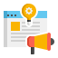 Illustration of a laptop with various digital icons such as a rocket, target, email, lightbulb, and megaphone